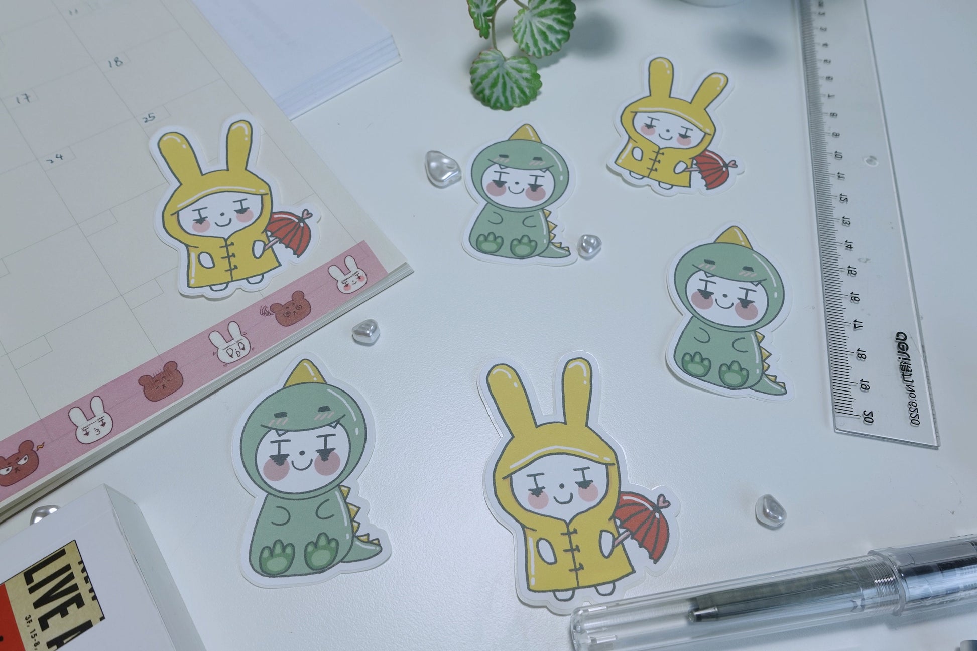 【DIE CUT | Matte sticker】- Dinosaur Bunnies