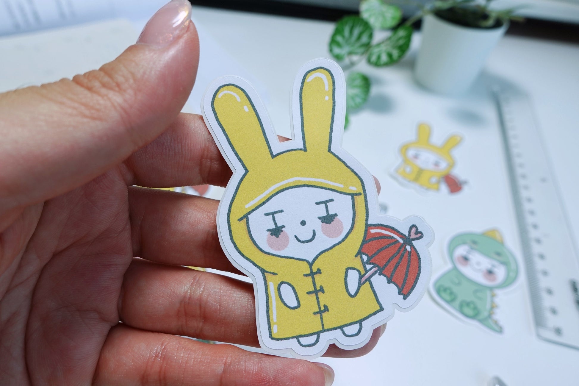【DIE CUT | Matte sticker】 - Raincoat Bunnies