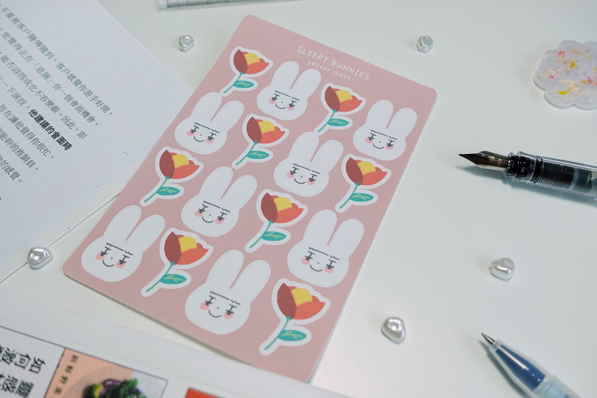 【MATTE | Sticker sheet】- Bunnies & Flower
